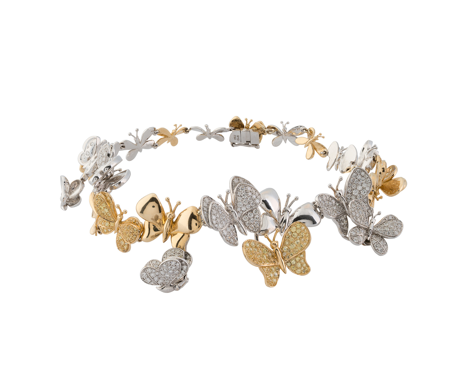 غالباً استخدم الذهب عيار 18 قيراطاً و ألماس VVS-VS مع أحجار كريمة مثل الياقوت الأصفر، الوردي و الأزرق. ويتم انتقاء جميع الأحجار يدوياً، والتأكد من مطابقتها من حيث الحجم والجودة، للحصول على مجوهرات متناسقة ومتطابقة. ولا يمكنني اختيار حجر واحد ليكون المفضل لدي، لأن كل حجر لهو مميزاته الخاصة به، التي تدفعني لاختياره.