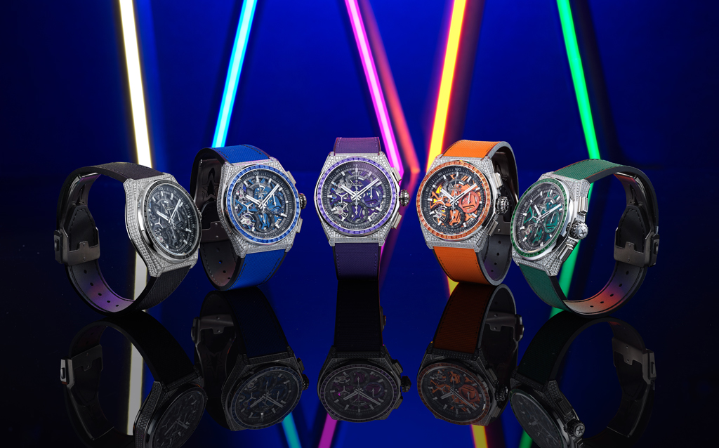 Zenith continues to express the theme of high-frequency chronometry through light and colours in the scintillating DEFY 21 Spectrum bejewelled collection.