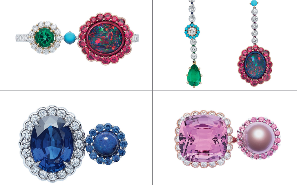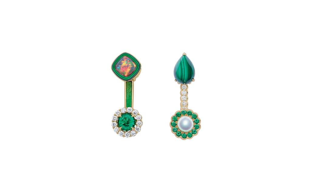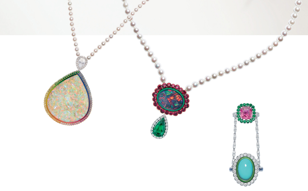 يُعتبر الأوبال من الأحجار المفضّلة لدى فيكتوار دو كاستيلان ويتجلّى بأبهى حلله في إصدار XXL الضخم، ويتعزّز بلمسة ساحرة من البرنيق على عقد مرصّع بالألماس. أمّا أقراط الأذن غير المتناسقة فهي تتلألأ من خلال الدرجات اللونية الساطعة التي تتراوح ما بين الأخضر والزهريّ لكشف النقاب عن شخصيتها العابثة والمعاصرة.